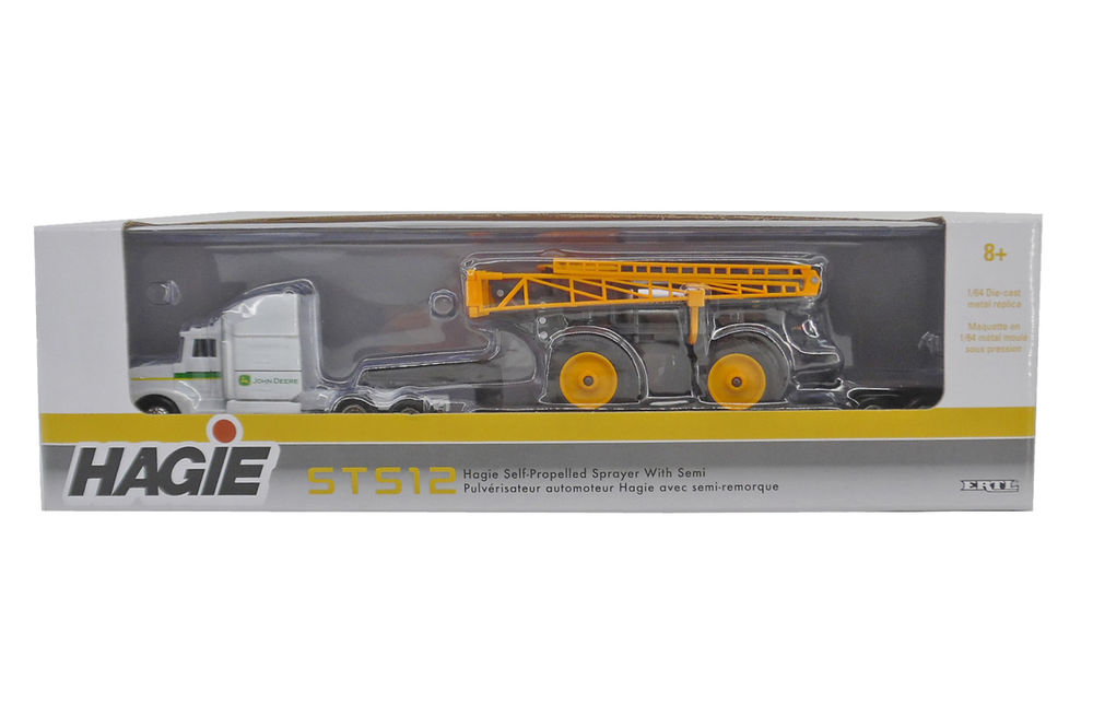 - Diecast metal scale model low loader semi trailer and Hagie SP sprayer by Ertl, with some plastic parts