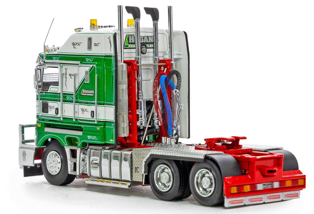 - Very highly detailed diecast metal Kenworth K200 2.8 cab scale model truck (prime mover) by Drake, with some plastic parts, in the livery of Hogans Heavy Haulage