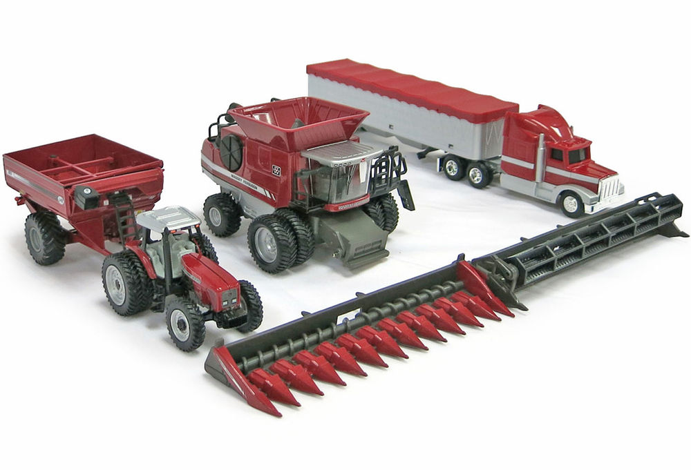 - Diecast metal scale model grain harvest set by Ertl, with some plastic parts