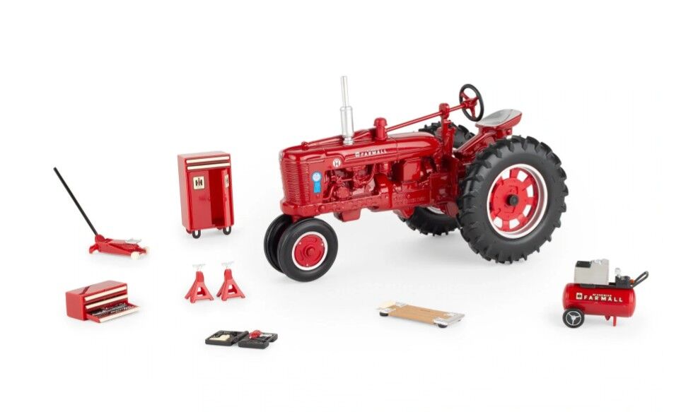 - Includes a rolling tool chest, jack stands, hydraulic jack, rolling creeper, air compressor, and tool case
