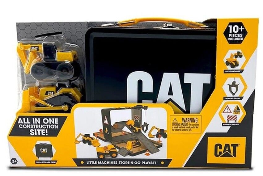 The Cat Little Machines Store 'N Go Playset allows little builders to bring the construction site with them wherever they go. The durable classic tin storage case easily transforms into a multi-level worksite. Open the tin case to reveal a playset complete with 5 Little Machines™ vehicles, accessories such as road signs, cones, and boulders, magnetic decals, ramps, and a working crane! With over 10 pieces included, this playset is sure to inspire your little builders imagination. When playtime is over, simply place everything back inside the tin carrying case for convenient storage. Real Cat machines are known for their high quality, these toys are no different, built to withstand the elements and perfect for indoor or outdoor play. Ages: 3 +Scale model recommended by Collector Models, Australia and Worldwide delivery available.