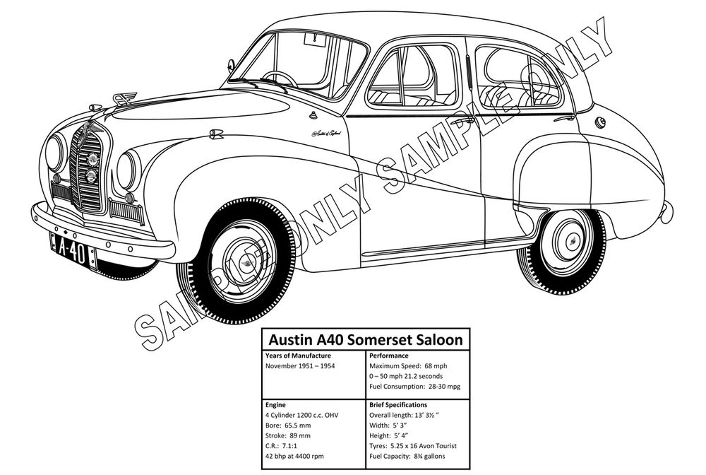 MURRAY PARKER SKETCH (mounted) - AUSTON A40 SOMERSET SALOON