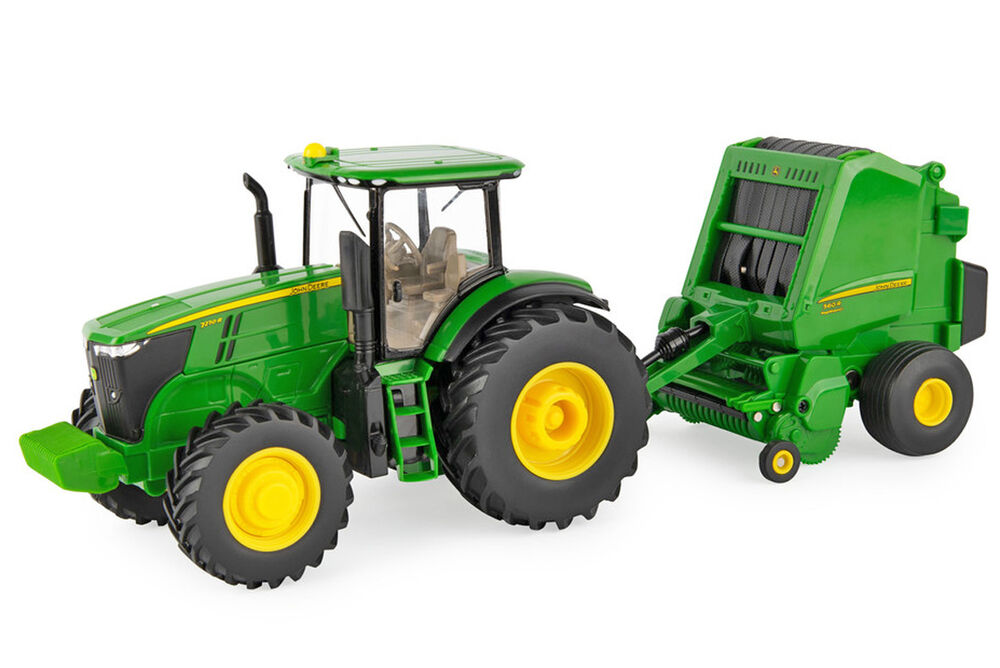 - Sturdy plastic scale model John Deere Tractor and Baler set from Ertl